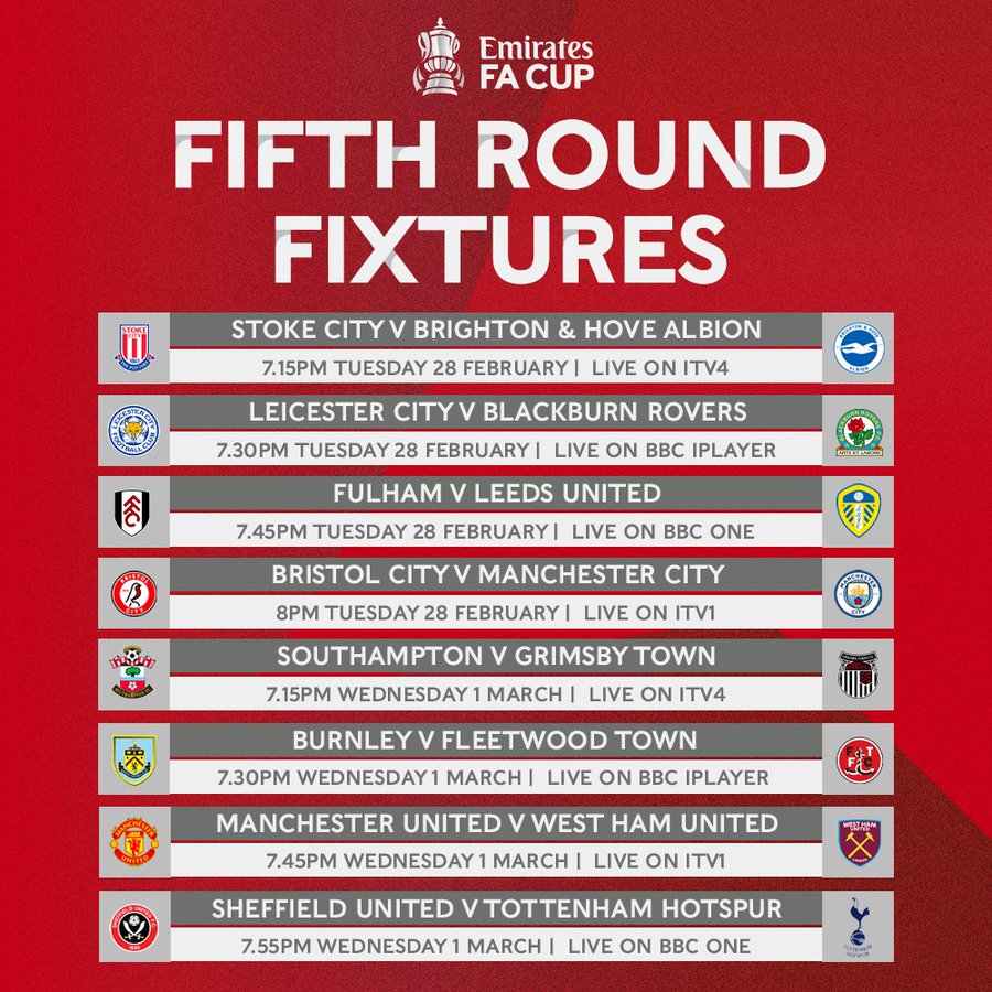 Emirates Fa Cup On Twitter Here Is The Official Emiratesfacup Quarter Final Draw What Fixture Are You Looking Forward To Https T Co Rlrf37qaiv Twitter