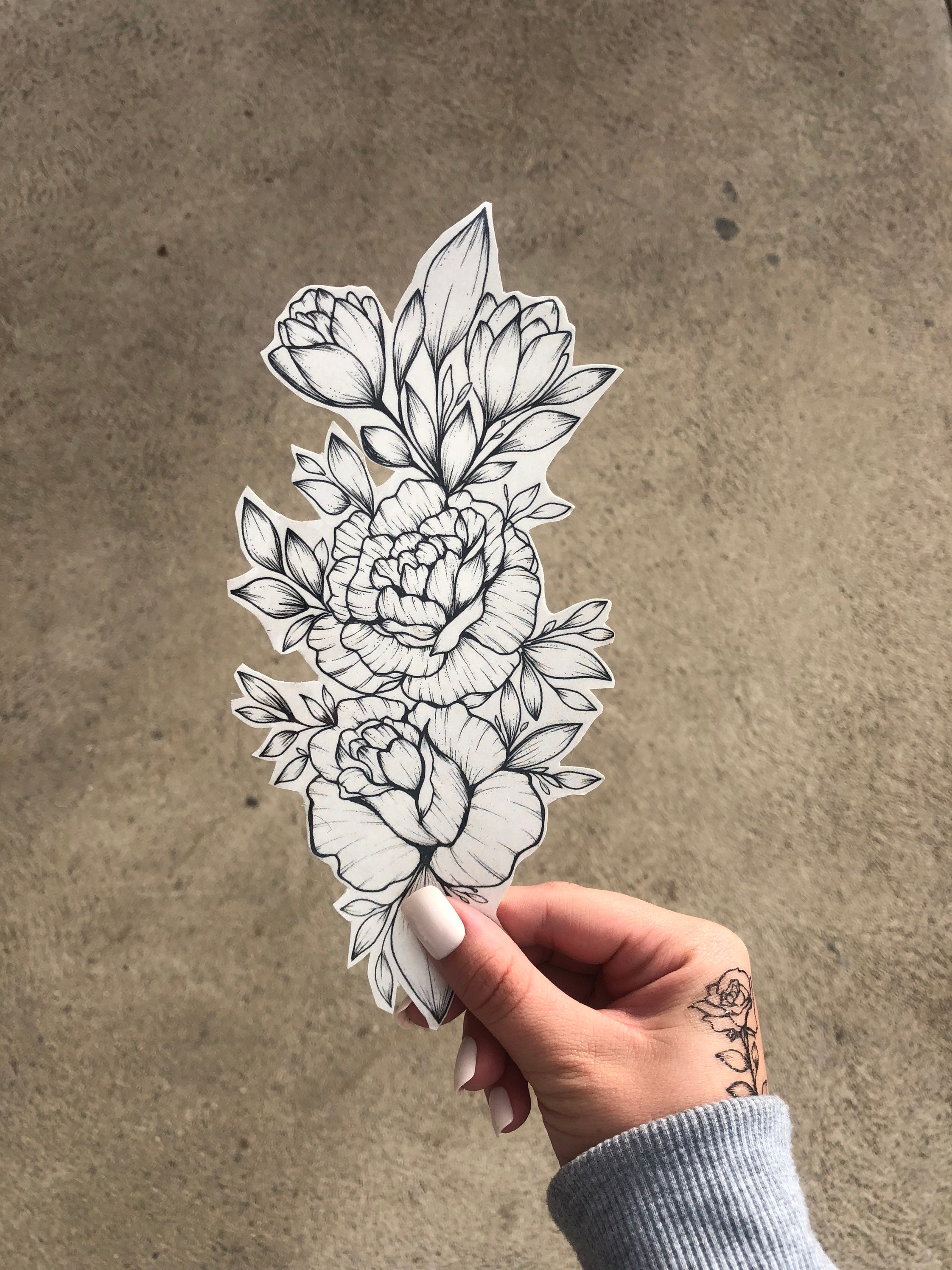 Large Floral Temporary Tattoo Hand Drawn Temporary Tattoo Etsy Canada